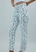 Vintage-inspired, all-over blue hydrangea botanical motif.